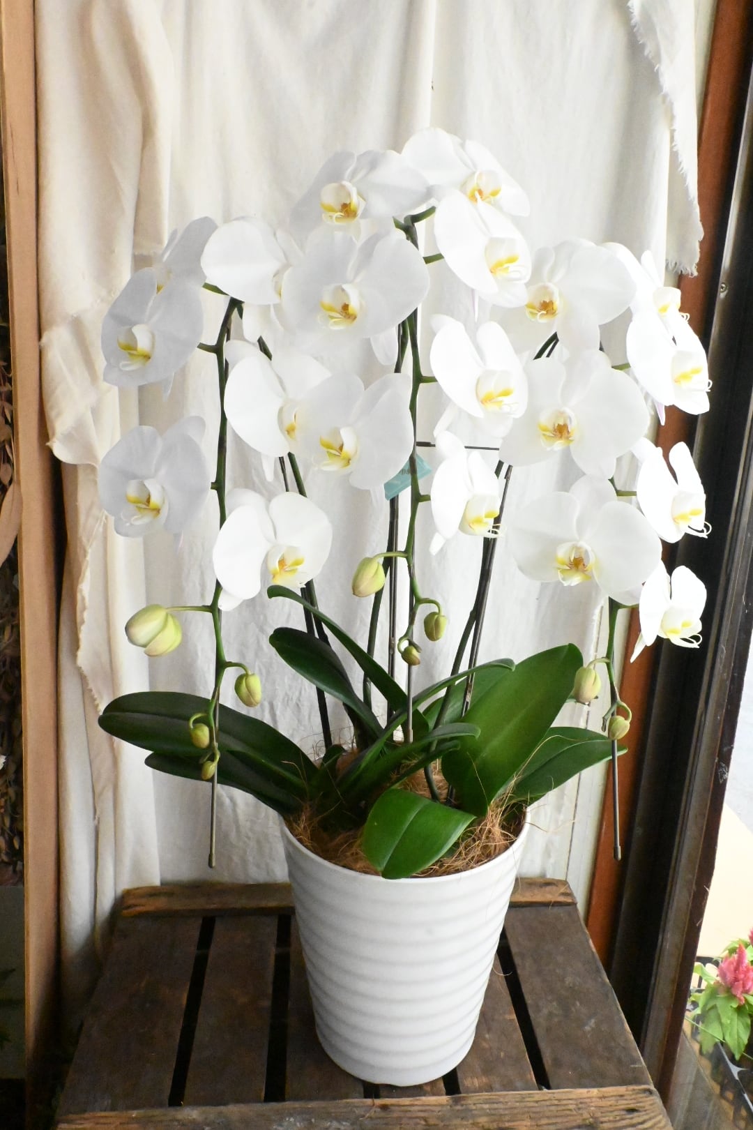大輪系の白胡蝶蘭鉢です。