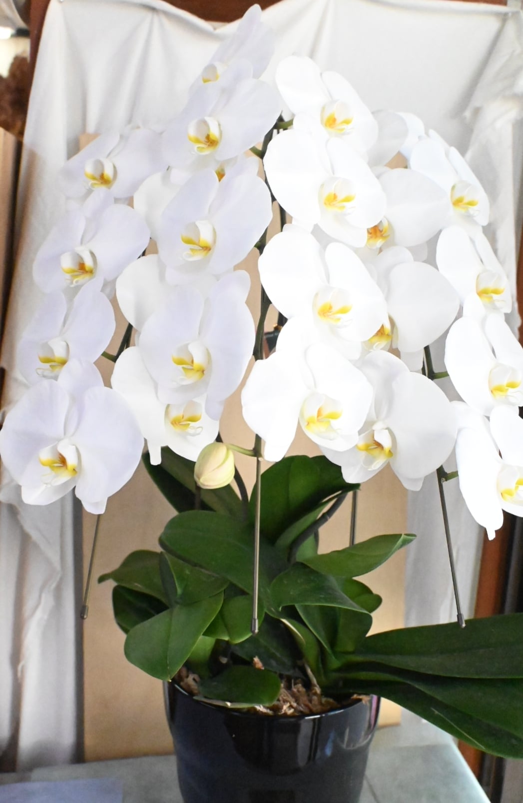 大輪系の白胡蝶蘭鉢です。