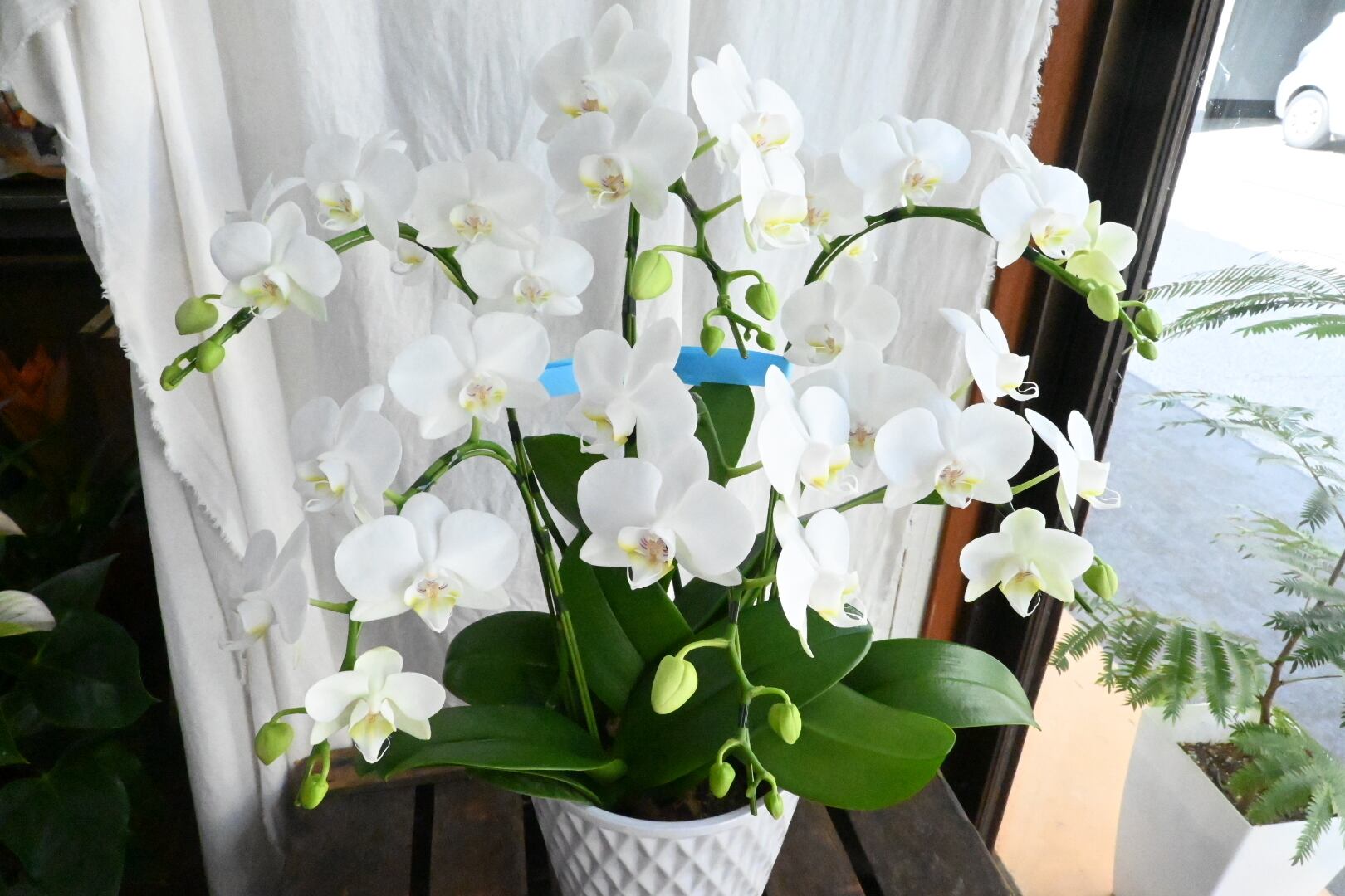 白系ミディ胡蝶蘭鉢です。